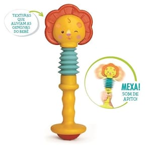 Chocalho E Mordedor Esticadinho Leãozinho Elka Brinquedos O chocalho esticadinho leãozinho é macio e gostoso de morder. Balance e bata que ele faz som de apito. Possui texturas que aliviam as gengivas do bebê. Produzido em material atóxico, sem ftalatos.