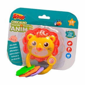 Chocalho e Mordedor - Morde-Morde Animal - Leão - Zoop Toys: O Chocalho Morde-Morde Animal da Zoop Toys vai entreter o bebê e ajudá-lo no período de dentição. Possui mordedores flexíveis e coloridos, com formas divertidas para massagear a gengiva aliviando o desconforto dos dentinhos que estão nascendo. É super leve, tem design divertido de leão, com tamanho ideal para as mãozinhas pequenas segurarem com facilidade. Detalhes: • Design divertido inspirado em um leãozinho • Com cores vivas, texturas diferentes e um barulhinho divertido • Incentiva a percepção visual, o tato e na audição do seu bebê • Livre de BPA e Ftalatos Informações: • Produto: Chocalho Morde-Morde Leão • Marca: Zoop Toys • Coleção: Chocalho Morde-Morde Animal • Modelo: Leão • Tipo: Chocalho com Mordedor para Bebê • Categoria: Brinquedos para Bebês • Subcategoria: Chocalho • Tamanho aprox. do produto: 14 cm de Altura • Conteúdo: 01 Chocalho Morde-Morde • Recomendação: para bebês a partir de 04 meses de idade Especificações: • Referência: ZP00665 • Código de Barras: 7899788400354 • Embalagem (C x A x L): 20 x 18 x 04 cm • Embalagem (Peso): 0.092 kg • Material / Composição: Plástico e Silicone • Registro: 005275/2019 • Certificado: Órgãos Autorizados - OCP´S (Organismos de Certificação de Produtos) Aviso: • As imagens são meramente ilustrativas • Os tamanhos e medidas são aproximados • As cores e estampas dos produtos podem ter variações • As informações são de responsabilidade do fabricante ou fornecedor