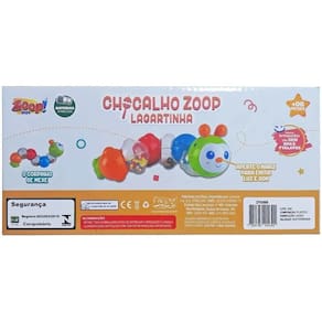 Chocalho Lagartinha Com Luz e Som - Zoop ToysA lagartinha possui cores chamativas e alegres que mantenha os pequenos sempre entretidos além de ser perfeito para as pequenas mãos dos bebês. Além de desenvolver a coordenação motora, estimula à concentração e desperta a criança para a convivência social.Ao apertar o nariz da Lagartinha, é reproduzido som e a luz acende.O corpinho mexe e as bolinhas se movimentam.Acompanham 3 baterias de 1,5VFICHA TÉCNICADimensões Produto: 20cm cumprimento × 5cm larguraFaixa Etária: 0 a 18 meses Ean: 7899788400392