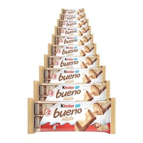 Kinder Bueno White são duas barrinhas de wafer crocantes com recheio cremoso de leite e avelãs, cobertas com uma fina camada de um delicioso chocolate branco. Embalado em porção individual, é perfeito para um lanche a qualquer momento do dia e como acompanhamento para seu café ou chá. Delicioso e prático. Peça o seu agora