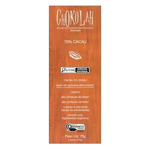 Chocolate 70% Cacau Baixo Em Açúcares Orgânico Chokolah 70G