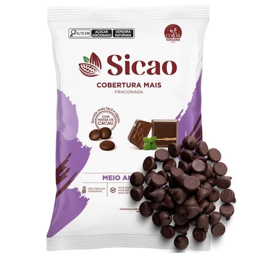 Mais sabor e mais rendimento para suas produções. A Cobertura Sabor Chocolate Meio Amargo Sicao Mais possui maior teor de cacau, com adição de l1quor de cacau, proporcionando sabor mais intenso e cor marcante. Apresenta excelente fluidez, brilho destacado e alto rendimento, garantindo eficiência e qualidade no preparo.