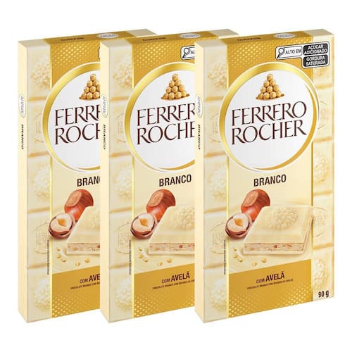 Chocolate Ferrero Rocher Branco com Avelã Kit 3 Barras de 90g Elegância em sabor e textura O Ferrero Rocher Branco com Avelã é a combinação perfeita de uma camada crocante de chocolate branco, envolvendo um coração cremoso com pedaços de avelã. Este bombom é a escolha ideal para quem busca sofisticação em cada mordida, seja para presentear ou para momentos especiais. Por que escolher Ferrero Rocher Branco Delicioso recheio cremoso com avelãs. Cobertura crocante de chocolate branco. Embalagem sofisticada e perfeita para presentes. Produzido com ingredientes selecionados de alta qualidade. Ideal para momentos de celebração ou consumo diário. Conteúdo: 3 Barras com 90g cada. Peso líquido total: 270g. Informações Adicionais: Ingredientes: Chocolate branco açúcar, leite integral em pó, de cacau, emulsificantes , avelãs, açúcar, óleos vegetais, soro de leite em pó, aromatizantes. Alérgicos: Contém leite, avelãs e derivados de soja. Pode conter amendoim e outros frutos secos. Condições de armazenamento: Conservar em local fresco e seco, longe de luz solar direta. Validade: 6 a 12 meses. Fabricante: Ferrero do Brasil Indústria e Comércio Ltda. Marca: Não Informado