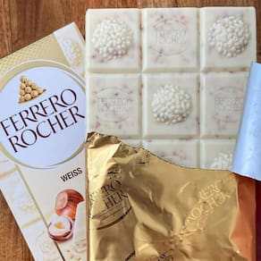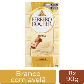 Chocolate Ferrero Rocher Branco com Avelã Kit 8 Barras de 90g Elegância em sabor e textura O Ferrero Rocher Branco com Avelã é a combinação perfeita de uma camada crocante de chocolate branco, envolvendo um coração cremoso com pedaços de avelã. Este bombom é a escolha ideal para quem busca sofisticação em cada mordida, seja para presentear ou para momentos especiais. Por que escolher Ferrero Rocher Branco Delicioso recheio cremoso com avelãs. Cobertura crocante de chocolate branco. Embalagem sofisticada e perfeita para presentes. Produzido com ingredientes selecionados de alta qualidade. Ideal para momentos de celebração ou consumo diário. Conteúdo: 8 Barras com 90g cada. Peso líquido total: 720g. Informações Adicionais: Ingredientes: Chocolate branco açúcar, leite integral em pó, de cacau, emulsificantes , avelãs, açúcar, óleos vegetais, soro de leite em pó, aromatizantes. Alérgicos: Contém leite, avelãs e derivados de soja. Pode conter amendoim e outros frutos secos. Condições de armazenamento: Conservar em local fresco e seco, longe de luz solar direta. Validade: 6 a 12 meses. Fabricante: Ferrero do Brasil Indústria e Comércio Ltda. Marca: Não Informado