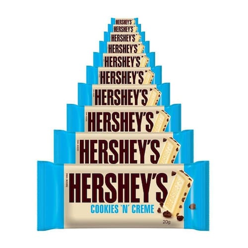 O mundialmente conhecido e aprovado Hersheys Cookies'n'Creme dispensa apresentações. No tamanho ideal para você levar com você em qualquer lugar.