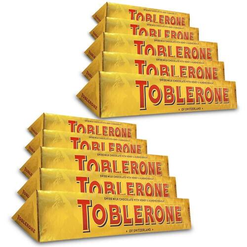 Chocolate Toblerone Milk Gold Kit 10 Unidades de 100g. O Clássico Dourado: Chocolate Toblerone Milk Gold - 100g Experimente a tradição e o sabor inconfundível do Chocolate Toblerone Milk Gold - 100g. Este ícone suíço, com seu formato triangular que evoca os majestosos Alpes, oferece uma experiência de chocolate ao leite rica e cremosa, perfeitamente combinada com pedacinhos de e o característico nougat de amêndoas. É a escolha perfeita para quem busca um clássico atemporal que agrada a todos os paladares. Por Que o Toblerone Milk Gold é Tão Amado Sabor Clássico e Cremoso: O chocolate ao leite de alta qualidade se derrete na boca, proporcionando uma sensação de puro prazer e nostalgia. Toque de e Nougat: A combinação perfeita de e nougat de amêndoas adiciona uma textura mastigável e um sabor adocicado que complementa o chocolate ao leite. Formato Icônico: Seu design triangular não é apenas estético, mas também facilita a quebra dos pedaços, tornando a experiência ainda mais divertida. Tradição Suíça: Produzido na Suíça, berço dos melhores chocolates do mundo, garantindo um padrão de excelência e pureza. Porção Ideal: A barra de 100g é perfeita para um momento de indulgência individual, para levar na bolsa ou para presentear. Toblerone: Uma Lenda em Cada Triângulo Desde sua criação, o Toblerone tem sido um símbolo de qualidade e inovação. A versão Milk Gold é a representação mais pura do legado da marca, oferecendo um chocolate que transcende gerações. Cada barra é um convite a explorar a rica história da confeitaria suíça, feita para ser apreciada e compartilhada. Conteúdo: 10 barras de Chocolate Toblerone Milk Gold. Peso Líquido Total: 1000g 00g Informações Adicionais: Ingredientes: Açúcar, leite em pó integral, de cacau, massa de cacau, 3% , gordura de desidratada, amêndoas 1,6% , açúcar invertido, clara de ovo em pó, emulsificante lecitina de soja, aromatizante. Cacau: 28% mínimo no chocolate ao leite. Alérgicos: Contém leite, amêndoa, derivados de soja e ovo. Pode conter outras nozes. Contém lactose. Não contém glúten. Condições de Armazenamento: Conservar em local fresco, seco e inodoro, longe da luz solar direta. Validade: 12 meses após a data de fabricação. Fabricante: Mondelez International.