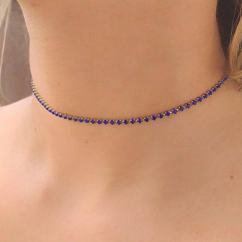 Choker De Strass Azul Escuro Folheado A Ouro18k