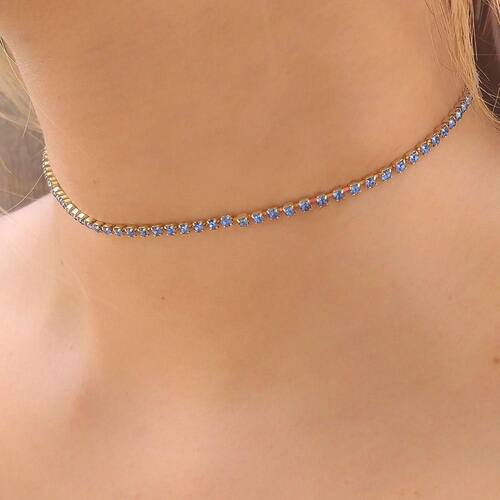 Choker De Strass Azul Medio Folheado A Ouro18k