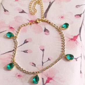 Choker De Strass Com Pedras Gota Fusion Verde Folheado A Ouro 18k Premium