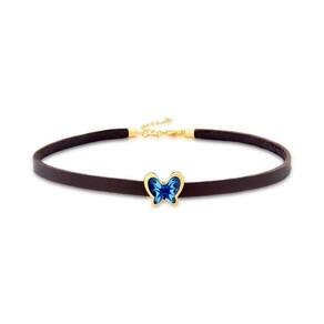 Um símbolo de transformação, a borboleta tem papel importante na natureza como polinizadora. Nessa choker de couro l na cor café, ela vem esmaltada em tons de azul, representando toda a beleza que consegue transmitir.