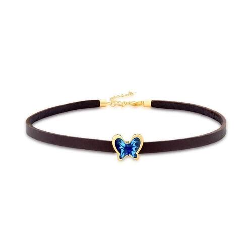 A VL traz à você a Choker em Couro com Borboleta-Azul Revestida em Ouro. Um modelo encantador, permite ser utilizado como pulseira de 2 voltas.