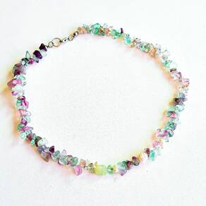 Choker feita com Fluorita e pérola natural, detalhes em metal com banho prateado. Peça trabalhada à mão, ajustável. Confortável e leve, a corrente possui de 45cm de circunferência. Acabamento de qualidade. Peso: 15g Design exclusivo.