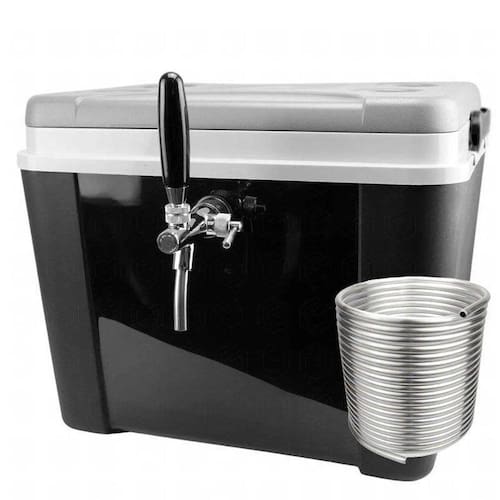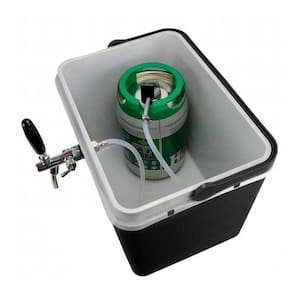 Chopeira A Gelo 34L com Torneira Italiana Cromada, Serpentina 10m e Destrave para Barril 5L Preto Chopeira térmica a gelo para barril de 5L Heineken, fabricada com alta qualidade de componentes que garantem um excelente funcionamento. DESCRIÇÃO: - Tampa da caixa com local para 4 copos/latas - 01 Torneira Italiana de Chopp Importada para extração de liquido e creme. - 01 Caixa térmica de 34 litros. Possui paredes com isolamento térmico interno em EPS Poliestireno expandido , que permite maior durabilidade do gelo, garantindo chopp gelado por mais tempo. - 01 Kit completo para conexão da torneira com o Barril Heineken engate 5/8 x 3/8, mangueira e abraçadeira - 01 Peça para o destravamento do Barril Heineken - Medidas da caixa : 43 x 30 x 40 C x L x A - Serpentina de 10 metros de inox Obs.: Caixa termica comporta 2 barris de 5L; juntamente da serpentina envolvendo um dos barris. Ean: 7894382004540