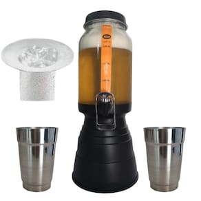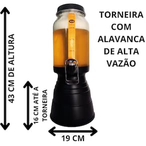 Torre de Chopp - Altura: 43 centímetros - Largura Total (Base): 19 centímetros - Material do Recipiente: Vidro - Material Tampa, Base e porta gelo : Alumínio