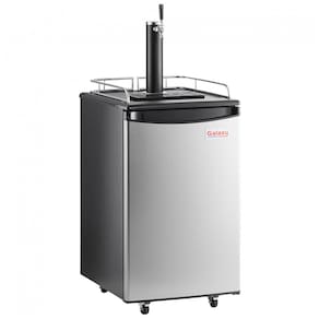 O Galaxy Single Tap Kegerator é um dispensador de chope projetado para uso em eventos leves, como pequenas festas corporativas ou reuniões de grupo, com capacidade para 1 barril de 1/2 (estilo 1/2 barrel). Ele utiliza isolamento em espuma injetada no local e sistema de refrigeração eficiente com refrigerante R-600a para manter a temperatura ideal de serviço entre 2°C e 10°C. O interior forrado em plástico e porta de aço com revestimento de vinil facilitam a limpeza.