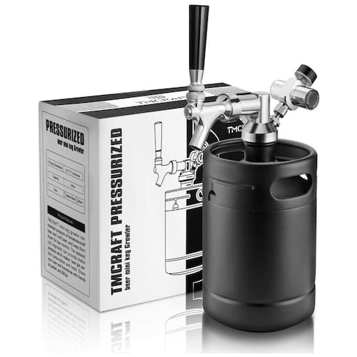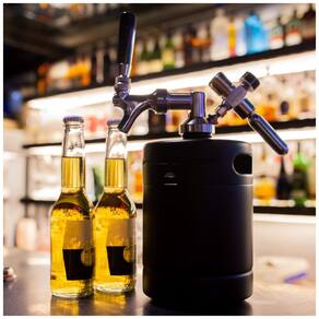 TAMANHO PORTÁTIL capacidade de 1.8L e tamanho de 17 x 12 x se encaixa no refrigerador , geladeira doméstico padrão e é fácil de transportar MANTENHA SUA CERVEJA FRESCA O sistema de mini barril pressurizado pode manter a pressão de vácuo no barril e manter fresco de cerveja caseira, chope e cerveja artesanal por alguns meses, também o material de aço inoxidável de qualidade alimentar mantém o sabor da cerveja REGULADOR ATUALIZADO O regulador atualizado tem um grau PSI mais preciso, a pressão de ajuste fino girando o botão de ajuste pode fazer com que a cerveja obtenha carbonatação e espuma perfeitas SISTEMA DE CARTUCHO DE CO2 Aparafuse os cartuchos de gás CO2 rosca de no suprimento de regulação para manter a carbonatação perfeita. A cápsula de 16g pode bater 3.7L de cerveja. CARTUCHO DE CO2 NÃO INCLUÍDO JAQUETA COOLER O refrigerador de barril isolado se encaixa no mini barril de 1.8L, esta jaqueta manterá sua cerveja gelada por 3 horas à temperatura ambiente. Não há nada mais divertido do que beber cerveja gelada Marca: Não Informado