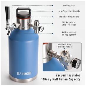 Torneira profissional torneira dispensadora de barra ajustável, trava para viajar com segurança e solta para destravar para desfrutar de caminhadas de acampamento felizes. 30psi Carbonation Cap Regulador de CO2 de estágio único, insira um cilindro de CO2 de 16g não incluído e gire o botão para aumentar ou diminuir entre 0 a 30 psi. Design isolado a vácuo de parede dupla por um longo tempo fresco, mantém a bebida gelada por até 24 horas ou quente por até 12 horas. Em movimento uma alça de transporte na tampa superior, leve sua cerveja caseira ou bar para qualquer lugar acampamento, caminhada, festa de churrasco, viagem de pesca. Exterior sólido presenteável com elegante acabamento revestido em pó azul marinho, aparência atraente e proteção extra contra amassados e arranhões Marca: Não Informado