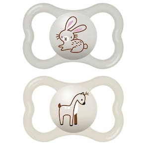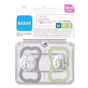 Chupeta Air 16 Meses Neutra Embalagem Dupla Diversa - MAM Baby Embalagem dupla, conta com 2 lindas chupetas. Possui design inovador, super leve e confortável. Feita em silicone SkinSoft, macio com superfícia texturizada e sedosa. Comprovadamente aceita por 94% das crianças*. O escudo extra ventilado que mantém a pele seca. Idade recomendada: a partir de 16 meses de idade. Selo INMETRO: CE-PUR/IQB 000265 NBR 10334/2003 OCP 006. IMPORTANTE: Desenho da chupeta pode variar, pois trata-se de item diverso