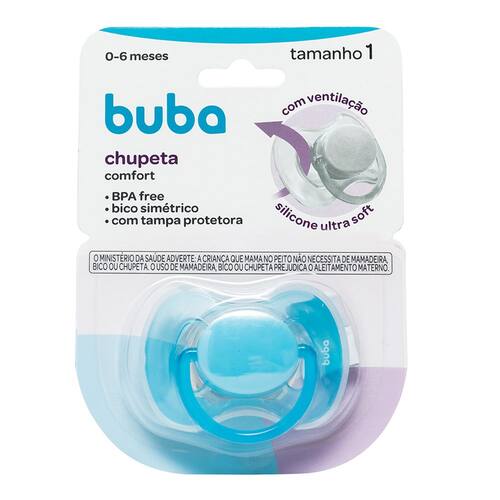Buba Chupeta Buba Comfort Tamanho 1 Azul A Chupeta Comfort Tamanho 1 Azul da Buba é perfeita para proporcionar conforto e tranquilidade ao bebê desde os primeiros meses de vida. Desenvolvida com design anatômico e materiais de alta qualidade, é ideal para o dia a dia dos pequenos. Características:Design Anatômico: Bico de silicone macio que se adapta ao formato da boca do bebê, proporcionando conforto e segurança.Base Ventilada: Furos na base que ajudam a evitar irritações na pele sensível do bebê.Cor Delicada: Azul suave que traz um toque de charme e elegância ao acessório.Material Seguro: Fabricada com materiais livres de BPA, garantindo tranquilidade no uso. Matéria-prima:SiliconePolipropileno Faixa Etária: Indicado para bebês a partir de 0 meses (0m+).Ofereça ao seu bebê conforto e estilo com a Chupeta Comfort Tamanho 1 Azul da Buba.Uma escolha prática e delicada para os primeiros momentos de vida!