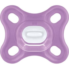 Super leve, a MAM Comfort é 32% mais leve que outras chupetas de silicone¹, seu bico simétrico com textura SkinSoft tem 94% de aceitação* é a menor de todas as chupetas MAM.