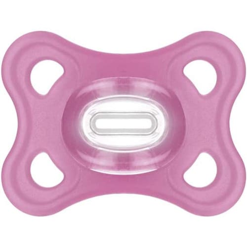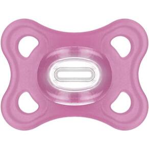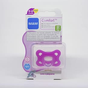 Design 100% silicone - especialmente higiênico, durável e seguroParticularmente leve - 32% mais leve¹ do que outras chupetas de siliconeBico extra pequeno e simétrico em Silicone SkinSoft de fácil aceitação*Alça em silicone compatível com os prendedores de chupetas MAMAcompanha estojo para esterilização e transporteMais informações da Chupeta Comfort 2 Rosa 0-6M - MAM