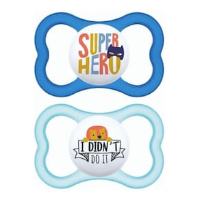 Perfeita para mostrar o sorriso mais bonito, a air 18+ além de ter o bico maior, ideal para babies a partir de 18 meses, é super leve e confortável devido ao seu exclusivo disco extra ventilado, delicado com a pele, especialmente desenhado para permitir a circulação do ar. Como toda chupeta mam, a air 18+ possui bico de silicone skinsoft, macio com superfície texturizada e sedosa, comprovadamente aceita por 94% das crianças. A air 18+ vem em um estojo, que esteriliza a chupeta no micro-ondas em 3 munutos, e permite seu armazenamento e transporte seguros. Pesquisa de mercado 2010-2018, testado com 1.383 bebês.