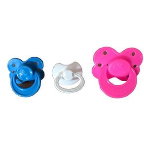 As chupetas rosa e azul são de medidas: L 3,7cm x A 2,8cm. Bico mede 2cm