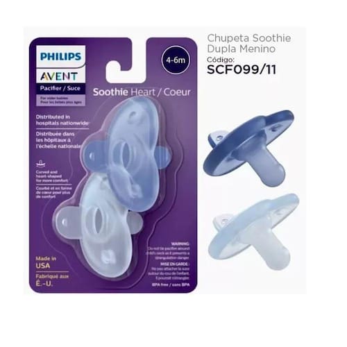Chupeta Soothie Avent, 100% em silicone médico, escudo flexível, tornando mais confortável para o bebê, formato do bico que estimula a sucção do bebê.