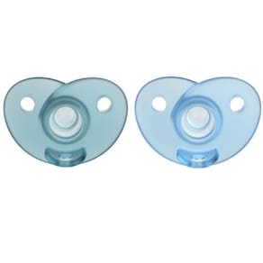 Chupeta soothie avent, 100% em silicone médico, escudo flexível, tornando mais confortável para o bebê, formato do bico que estimula e supri a sucção do bebê, tem uma abertura no escudo que a permite a mãe coloque o dedinho mindinho para massagear a boca do bebê. Indicado para recém-nascidos.