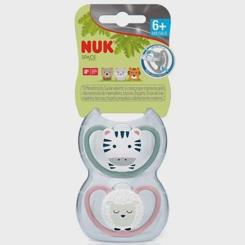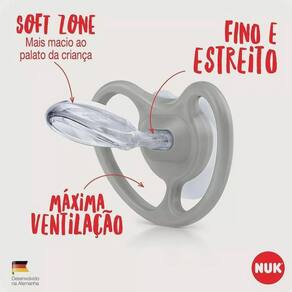 Chupeta Space da Nuk, possui nova tecnologia desenvolvida para o conforto do seu bebê ao longo do seu crescimento. Bico oral fit 2.0, mais fino e mais suave, possui máxima ventilação, mínimo contato com a pele, evitando irritação e alergia no bebê. Sua embalagem pode ser higienizada com vapor no microondas. BPA Free.