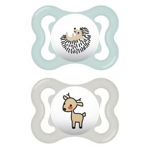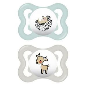 Características: - Embalagem dupla: contém 2 duas unidades - Desenvolvida por especialistas da saúde - Silicone SkinSoft, macio com superfície texturizada e sedosa, comprovadamente aceita por 94% das crianças - Pesquisa de mercado 2010-2018, testado com 1.383 bebês. - Possui furos de ventilação para não irritar a pele sensível - Compatível com os prendedores de chupetas MAM - Acompanha estojo para esterilização e transporte - BPA/BPS free: Todos os produtos da MAM são feitos de materiais livres de BPA e BPS - Imagens meramente ilustrativas, as cores e estampas podem variar de acordo com o lote do fabricante
