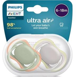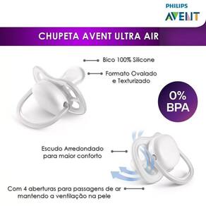 Uma chupeta leve e com aberturas de ar para a pele sensível do bebê. Grandes aberturas para permitir que a pele do bebê respire. Deixe a pele do seu bebê respirar com a Chupeta Philips Avent Ultra Air, que possui 4 grandes aberturas e um escudo leve desenhado para o o máximo de fluxo de ar, para que a pele do bebê continue seca enquanto usa a chupeta.