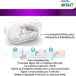 -com caixa protetora; -caixa para esterilização em micro-ondas; -livre de BPA. -tamanho: 0-6meses -contém: 2und