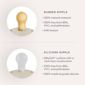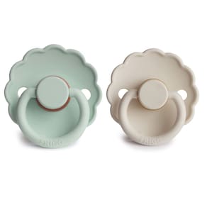 La línea FRIGG de chupetes de látex natural Daisy ha sido cuidadosamente diseñada para la comodidad de tu bebé. Su curva exterior mantiene el chupete alejado de la delicada piel, mientras que características como los orificios de ventilación y el asa de seguridad aseguran que tu bebé esté protegido. Disponibles en varios colores suaves, los chupetes FRIGG son una hermosa adición a tus esenciales para bebés. Con bordes ondulados que imitan los pétalos de una flor, el chupete FRIGG Daisy de caucho natural lleva el diseño pensado de nuestro chupete clásico a un diseño encantador y juguetón. Diseñado para la comodidad de tu bebé, su curva exterior mantiene el chupete alejado de su piel delicada, y características como los orificios de aire y el asa de seguridad garantizan la protección de tu bebé. Paquete con dos chupetes. Adecuado para edades de 0 a 6 meses. 100% libre de BPA, BPS, PVC y ftalatos. Los chupetes están hechos con caucho natural y pueden expandirse con el uso. Diseñado y fabricado en Dinamarca. Cuidado recomendado: Coloca el chupete en un recipiente, vierte agua hirviendo encima y deja reposar de 3 a 5 minutos. No lo sumerjas por más de 5 minutos. Retíralo y colócalo sobre una superficie plana para que se seque al aire. No uses esterilizadores, microondas ni lavavajillas. Para una seguridad e higiene óptimas, recomendamos descartar el chupete después de 1 a 2 meses de uso continuo. Los chupetes de caucho natural pueden experimentar cambios en la textura con el tiempo debido a la exposición a temperaturas extremas, humedad o luz solar directa.