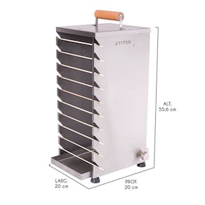 PRINCIPAIS FUNCIONALIDADES: - Assa carnes, peixes e legumes com praticidade; - Capacidade para até 10 espetinhos; - Não produz fumaça; - Estrutura externa e interna em inox de alta durabilidade.