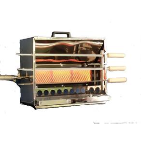 Churrasqueira 3 Espetos com Queimador Infravermelho Aço Inox A churrasqueira é comprovadamente a mais econômica, consumindo apenas 180g/h, seu churrasco sairá mais barato do que nunca. Com 1 queimador em infravermelho de 2250kcal, ela proporciona uma maior potência e rapidez para assar seu churrasco. Além do mais ela é desenvolvida em aço Inox, maior durabilidade e facilidade na limpeza. Acompanha:1 x Churrasqueira; 1x Bandeja coletora de gordura; 3x Espetos com cabo de madeira. Pra ser no botijão, Giro Manual, Não possui porta de vidro. Dimensões Externas: Comprimento 39cm x Largura 19cm x Altura 33cm . Dimensões internas: Comprimento 34cm x Largura distância do queimador para à carne 11cm, Altura 28cm. Marca: Não Informado Ean: 7895769809901