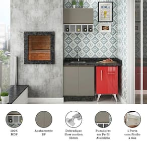 Informacoes Complementares: 1 Porta Basculante com abertura auxiliada por Pistao a Gas. Mini adega com capacidade para 5 garrafas. Prateleiras suportam ate 9kg, bases 10kg. Distribua uniformemente os objetos. **Obs: Tampo/Pia e Rodapes nao acompanham o balcao.
