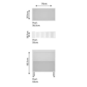 Ambiente composto por: 1 Balcao de Cozinha 70cm 2 Portas sem Tampo Perola Luciane Moveis 82,5 x 70 x 53 (Altura x Largura x Profundidade - cm) 1 Armario Aereo 70 cm 1 Porta Basculante Perola Luciane Moveis 37,5 x 70 x 36,5 (Altura x Largura x Profundidade - cm) 1 Nicho Garrafeiro Horizontal 70 cm Perola Luciane Moveis 18,7 x 70 x 35 (Altura x Largura x Profundidade - cm)