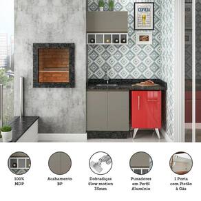 Informações Complementares: 1 Porta Basculante com abertura auxiliada por Pistão à Gás. Mini adega com capacidade para 5 garrafas. Prateleiras suportam até 9kg, bases 10kg. Distribua uniformemente os objetos. **Obs: Tampo/Pia e Rodapés não acompanham o balcão.