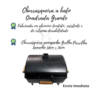 Item na compra : Churrasqueira A Bafo Quadrada Em Aluminio Fundido com 1un grelha.