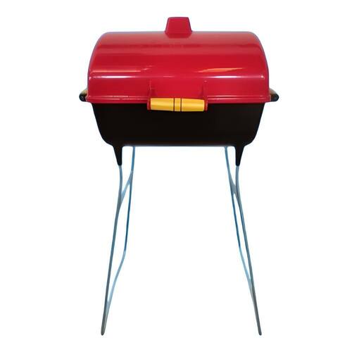 Churrasqueira a Bafo gourmet com grelha Pé alta a Carvão As Churrasqueiras em aluminio Fundido Vemelha e Preta Especialmente desenvolvidas para seu churrasco entre família e amigos. Com um tamanho proporcional, podendo leva-lá para qualquer lugar desejado, além poder ser usada aberta ou fechada.