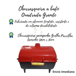 Itens na compra : 1un Churrasqueira A Bafo Quadrada Em Aluminio com 1 un grelha e Suporte pés Marca: Churrasqueira Alta Gold