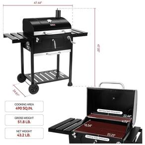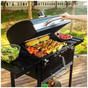 Grande espaço para grelhar Um total de 305 centímetros quadrados de espaço para grelhar, incluindo 237 centímetros quadrados. área de cozimento principal e rack de aquecimento de aço inoxidável de 68 centímetros quadrados para a experiência de fumar perfeita e pode grelhar alimentos para mais de 8 pessoas ao mesmo tempo. Suporte de carvão elevável Suporte de carvão ajustável é mais fácil de usar, para ajustar o poder de fogo para diferentes alimentos. O ajuste fino da temperatura durante o cozimento garante o melhor desempenho. Acesso conveniente para adicionar carvão Com a porta frontal de acesso ao carvão, os carvões podem ser adicionados de forma rápida e conveniente durante a grelha com perda mínima de calor. Movimento livre e grande espaço de zenamento Duas grandes rodas rolantes são fáceis de mover e duas mesas laterais e prateleira inferior oferecem espaço extra de preparação, bem como zenamento adicional. Fácil de limpar A bandeja de cinzas extraível galvanizada coleta cinzas e facilita o despejo de cinzas sem problemas. Basta deslizar para fora com a alça Marca: Não Informado