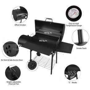 Saborosos sabores de fumaça: O defumador offset está firmemente preso à grelha para garantir uma boa circulação de calor e fumaça. Porta lateral de fácil abertura para adicionar carvão e retirar cinzas a ventilação de ar alimenta o fogo instantaneamente.