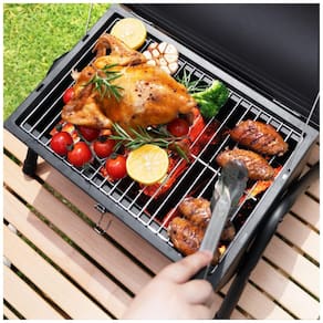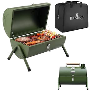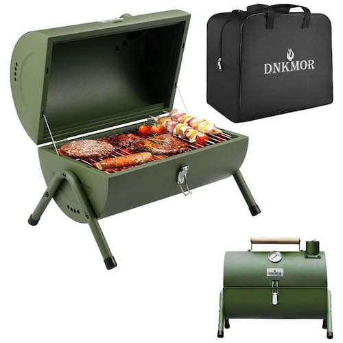 Grelhador a Carvão Portátil Carvão Pequeno Portátil DNKMOR com cabo de madeira na parte superior do defumador. É fácil de transportar e levar, perfeito para camping, praia, piqueniques ou festa de churrasco pelo menos 3 4 pessoas por vez. Alta qualidade construída para durar a pequena churrasqueira de carvão é feita de metal sólido e malha de arame cromada premium, que é resistente ao calor e a arranhões, garante que a churrasqueira não enferruje e seja fácil de limpar após muito tempo de uso. Design razoável A parte superior da tampa com uma chaminé para ventilação, o mini grelhador a carvão DNKMOR também inclui um termômetro na grelha para um melhor controle do sabor do cozimento. Dentro da grelha, há uma grade de cozimento cromada de uma peça e uma panela de carvão. Fácil de instalar e montar Este grelhador a carvão pode ser facilmente instalado e imediatamente para cozinhar. Há uma instrução detalhada no pacote, monte passo a passo, como um pedaço de bolo Marca: Não Informado