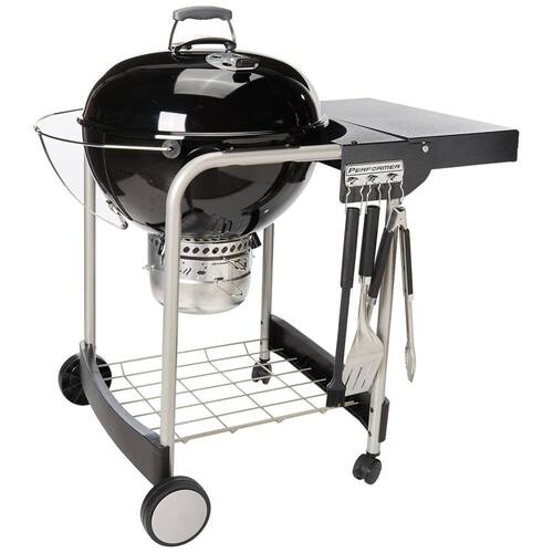 O desempenho poderoso e as características convenientes da grelha de carvão Performer é sua desculpa para acender as brasas todos os dias. Prepare os alimentos na mesa de trabalho, pendure os acessórios de grelhação dos ganchos da ferramenta e, em seguida, limpe com facilidade mas só depois de ter dado cada mordida de sua refeição perfeitamente grelhada. Dimensões Tampa Fechada H x W x D. Área total de cozimento quadrados. Contém até 13 hambúrgueres feitos com uma prensa de hambúrguer Weber vendidos separadamente Deslize a tampa para o suporte da tampa Tuck Away na lateral da grelha para evitar colocá la no chão. A grade de cozimento é compatível com pastilhas GBS e é articulada para adicionar carvão facilmente durante a grelha. Ganchos de ferramentas para pendurar ferramentas de grelhação, como uma espátula e pinças. Sistema de limpeza de aço alumínio One Touch. Termômetro de tampa embutido exibe a temperatura interna da sua grade. Instruções de montagem interativas 3D para este produto estão disponíveis através do aplicativo BILT Marca: Não Informado