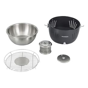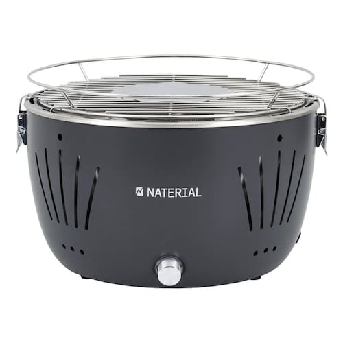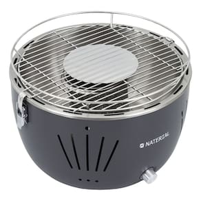 Churrasqueira portátil a carvão, ideal para uso interno e externo, com grelha removível em aço. Design moderno em tonalidade cinza.Vendido por Home Living e entregue por PontoFrio