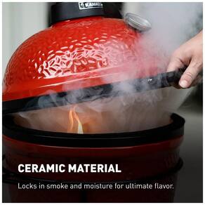 Grelha de cerâmica premium de com suporte de ferro fundido Invólucro de paredes espessas e resistente ao calor que bloqueia a fumaça e a umidade em qualquer temperatura Saída de ar de ferro fundido para controle de temperatura Grelha de cozimento em aço inoxidável 304 Medidor de temperatura embutido Marca: Não Informado