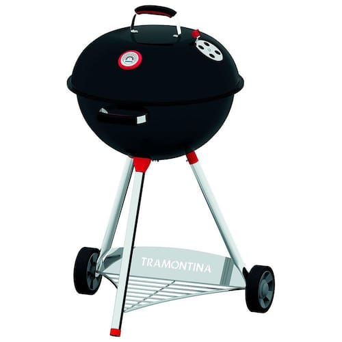 A churrasqueira a carvão oferece versatilidade para quem gosta de variar o cardápio. Possui corpo e tampa em aço esmaltado e conta com medidor de temperatura em aço inox. São necessários apenas dois quilos e meio de carvão para o churrasco ficar no ponto ideal, permitindo escolher se vai fazer na grelha ou no espeto de 75 centímetros. Conta com rodas emborrachadas, que tornam a movimentação muito mais fácil.