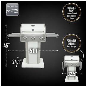 Churrasqueira a Gás 30.000 BTU com 3 Queimadores e Mesas Laterais em Aço Inoxidável, Branca, KENMORE PG A4030400LD PE, Branco